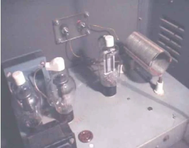 This image is a closeup of the ray tube from the preceding pictures showing the Kennedy radio equipment.