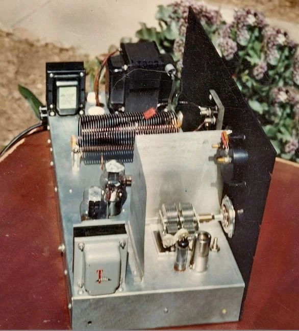 Device built by Verne Thompson about 1954 or shortly thereafter, and likely after the "Scoon" device above. The plasma tube shown in this photo may not be original. Like the "Scoon" device, this design used a Hartley oscillator for a fixed radio carrier frequency (currently unknown), and an Eico model 377 generator for audio sine wave frequencies. All photographs kindly provided by Dr. James Bare.